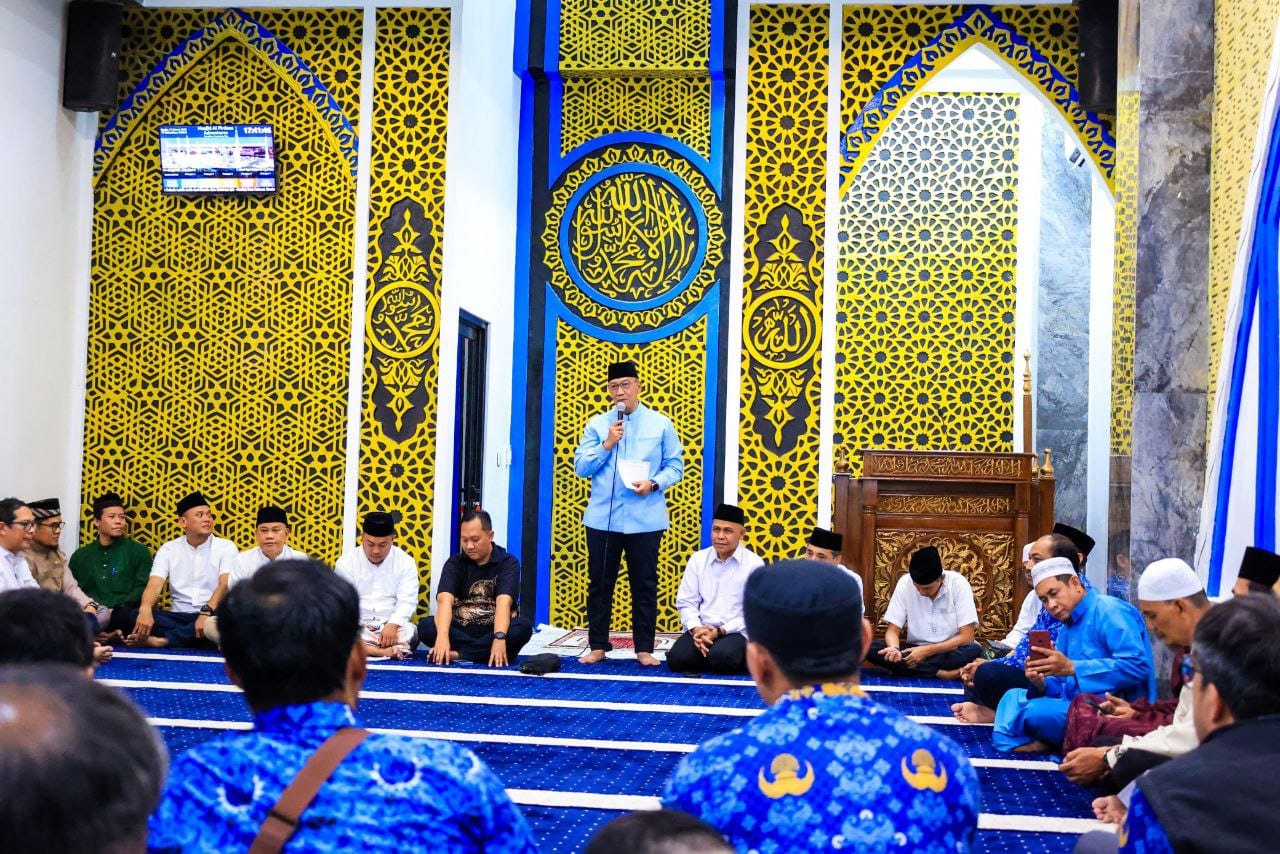 Sekretaris Daerah (Sekda) Kota Tangsel, Bambang Noertjahjo hadir di tengah-tengah masyarakat saat berkumpul dalam acara safari ramadan di Masjid Al-Firdaus, Paradise Serpong City, Cluster Adventure RW 08, Kelurahan Babakan, Kecamatan Setu pada Senin (17/3/2025).