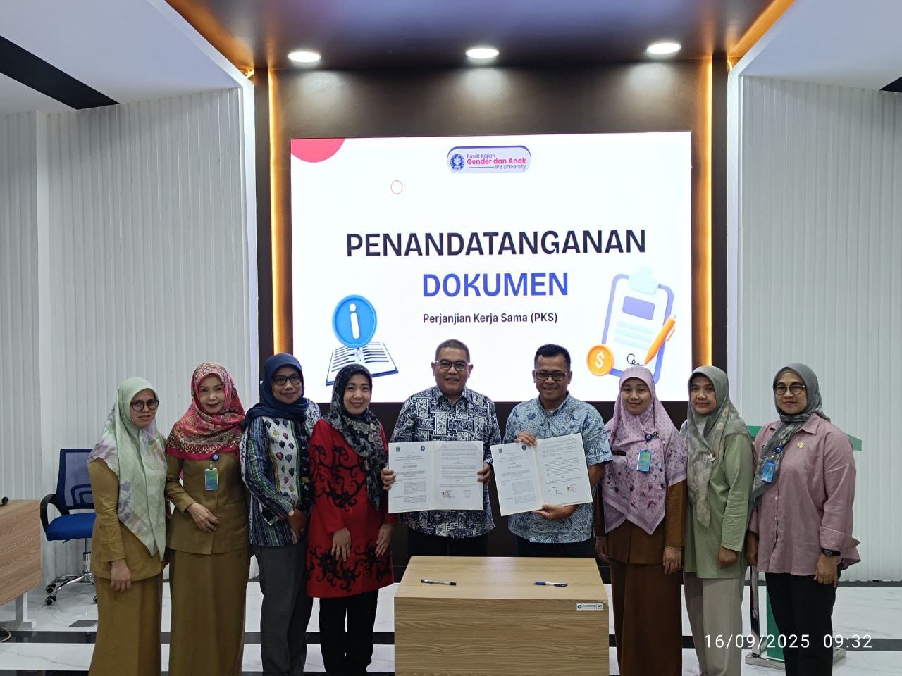 Penandatanganan Perjanjian Kerja Sama (PKS) dilakukan bersama Lembaga Riset Internasional Pembangunan Sosial, Ekonomi dan Kawasan (LRI-PSEK) dan Pusat Kajian Gender dan Anak (PKGA) IPB pada Selasa (16/09/2025).