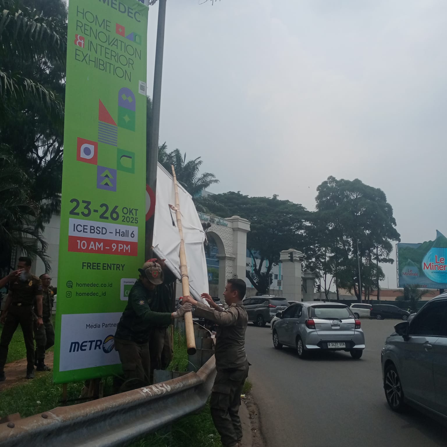 MEDIATANGSEL.COM – Satuan Polisi Pamong Praja (Satpol PP) Kota Tangerang Selatan terus menggencarkan penertiban reklame tanpa izin di sejumlah titik strategis.